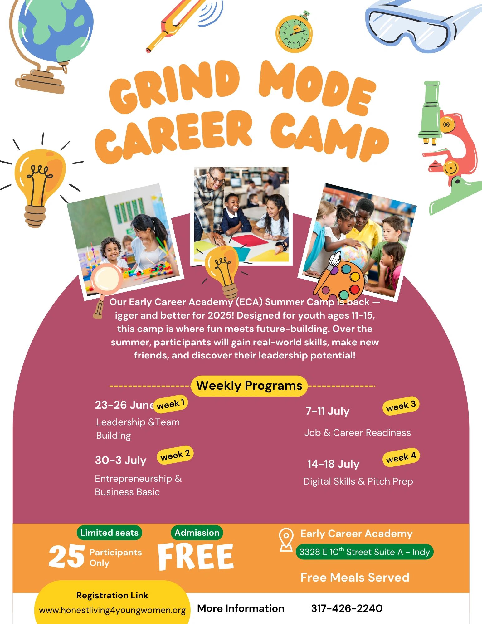The Early Career Academy (ECA) Summer Camp is designed to empower youth aged 11-15 with essential skills in entrepreneurship, leadership, and career development. Our goal is to provide a structured yet dynamic learning environment that bridges the gap between education and professional success.